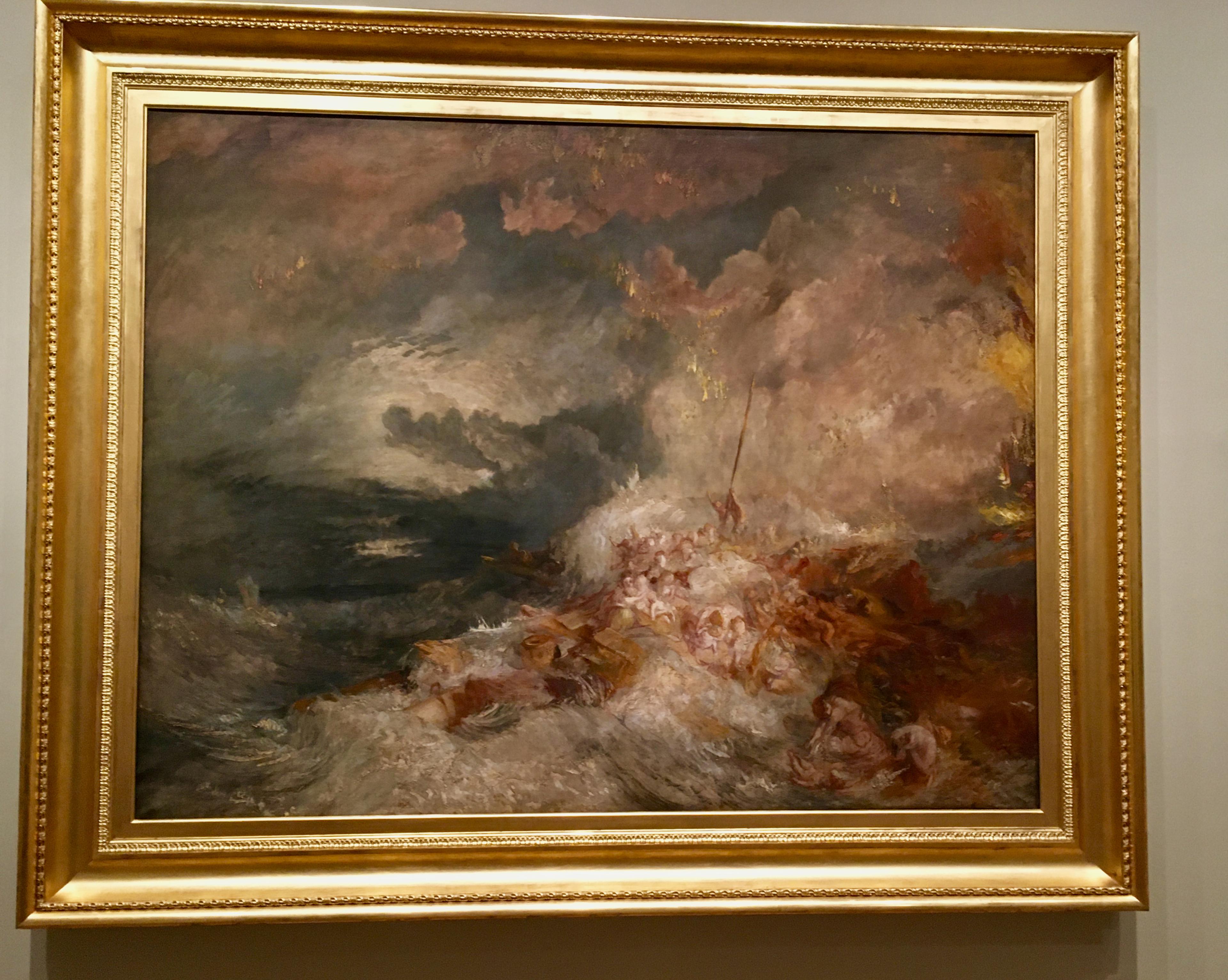 You’re correct. This painting is “A Disaster at Sea” and is not the famous Turner painting, as you put it. That work, “Slavers throwing overboard the dead and dying – typhoon coming on” (known now as “The Slave Ship”) was exhibited in 1840. I first saw it when I was in graduate school because it hangs in the Museum of Fine Arts Boston. It was made in response to the captain of the slave ship Zhong, in 1781,ordering approximately 150 Africans taken captive as slaves to be thrown overboard, when there was little fresh water onboard, in order to keep it for himself and the crew. They then filed a claim to collect insurance payments on their loss of cargo. Yes, that degree of greed and hubris. The insurers refused to pay and the Gregson company filed suit. The murder on the Zhong was made famous by a very public court case Gregson v Gilbert, which found at first in favor of the slavers (Gregson) against the insurers (Gilbert) ruling that the deliberate murder of enslaved persons was legal and the insurer would be required to pay. This was later overturned on appeal – but not on anti-slavery grounds – in an argument penned by the Lord Chief Justice and Earl Mansfield who found the captain at fault, but not after considerable agitation and campaigning led by Olaudah Equiano and Granville Sharp. The murder on the Zhong has been an object of abolitionist attention since the event became known, culminating most magnificently, in my opinion, in the book-length work by poet M. NourbeSe Philip, entitled Zong!Which, if you haven’t read, uses the legal text – the sole archival document of the incident – as what Philip calls a “word store” (p. 191) to “tell a story that can only be told by not telling.” The poem is, as she says, almost unreadable, its concluding “Notanda” explaining why, which too is a tour de force on the problem of how to write about slavery from the vantage point of the enslaved with so few hostile documents. Turner’s painting also is part of this abolitionist history. He exhibited it at the Royal Academy of the Arts, historians think intentionally to coincide with a meeting of the British Anti-Slavery Society.
